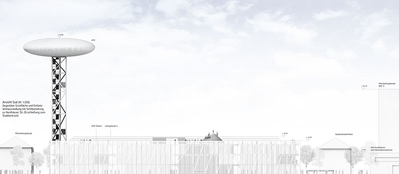 Die UFO-Station ermöglicht intensive und vielfältige Kooperationen auf kurzen Wegen und setzt einen städtebaulichen Akzent. Ihre „Architekturen des Wissens” (Wolfgang Schäffner) schließen die Südlinie des Campus mit einem offenen, vielfältigen und charaktervollen Gebäude ab. Sie ist ein Ort, um sich zu treffen, aber auch, um über all die merkwürdigen Welten zu lesen, schreiben, nachzudenken, sie sich anzuschauen und vor allem über sie zu staunen.